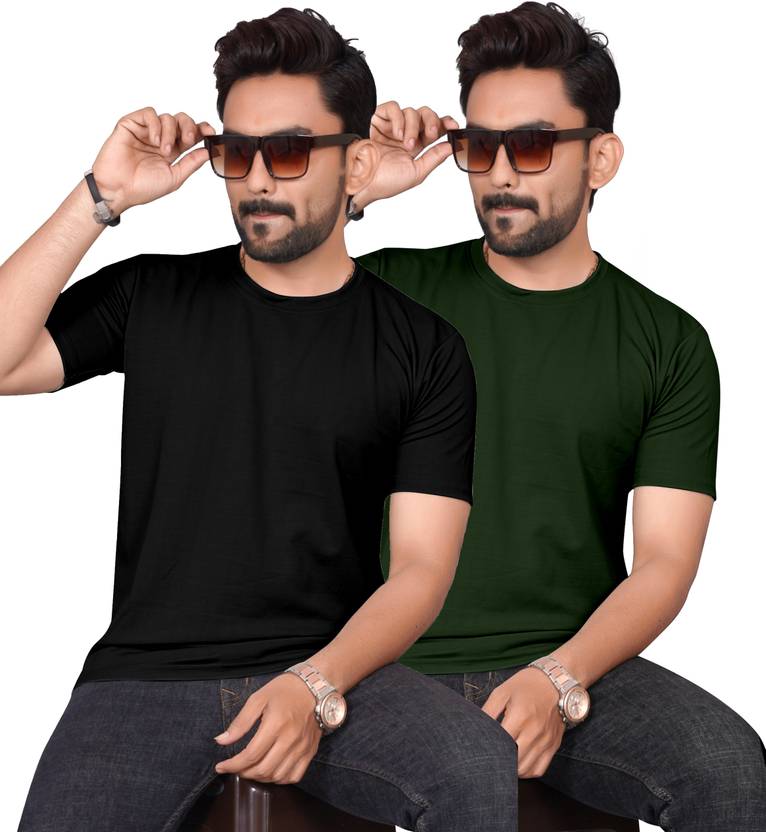 Mens Round Neck Plain Half Sleeve T-shirts (Pack Of 2)